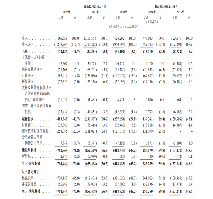 奥动新能源招股书显示,2022-2025年上半年,公司亏损分别为7.85亿、6.55亿、4.19亿元和1.57亿元。三年半的时间里,累计亏损超过20亿元。
