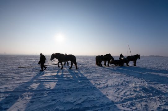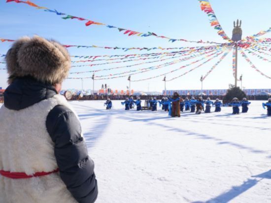 冬捕多于春节前举行,融合赶年集、过大年、祭祖等习俗,在自然时序中形成独立的文化存在。此时正值大寒小寒,气温可降至零下40多摄氏度,严寒考验着生命与技艺。为解决冰下捕鱼难题,历代鱼把头将经验智慧融于查干湖冬捕,延续至今的“祭湖醒网”仪式即为体现。祭湖表达对自然赐予的感恩,舞者以博舞展现虔诚;渔工饮壮行酒后,乘爬犁驶向冰面,开始一年中关键的冬捕。这一切彰显着人类对经验的珍视与传承。